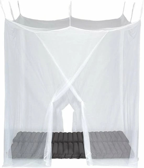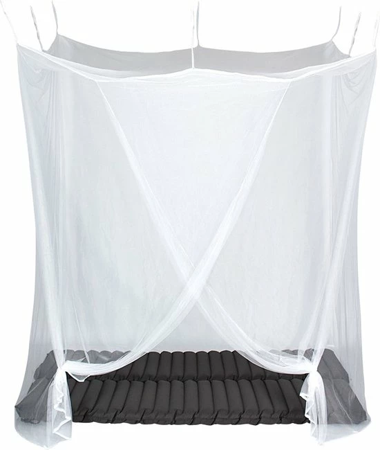 Bescherm jezelf tegen vervelende muggen en andere insecten. Dit box model mustkietennet van Abbey Camp garandeert een goede nachtrust voor twee personen. Deze klamboe houdt namelijk muggen en andere insecten bij je vandaan terwijl je ligt te slapen. Naast bescherming creëert de klamboe ook een luxe uitstraling in je slaapkamer. De klamboe heeft een goede aansluiting op een tweepersoonsbed (of kingsize) en verstevigde randen voor extra duurzaamheid. Door het rechthoekige box model heb je optimale bewegingsruimte in de hoogte. De klamboe heeft ook openingen met overslag aan beide zijden, zo hoef je niet steeds over het bed heen te kruipen. Er worden bevestigingsmaterialen meegeleverd.