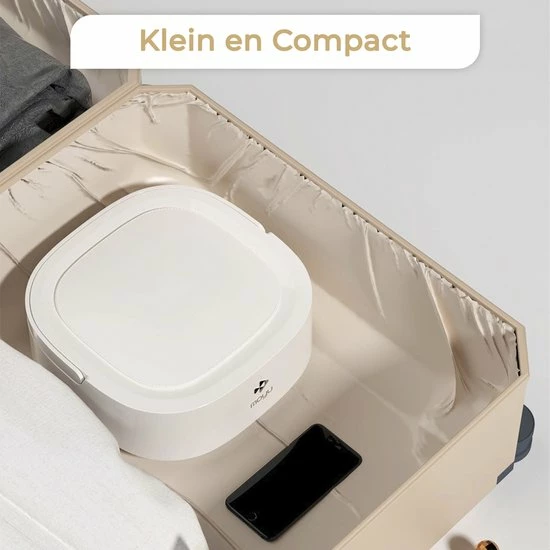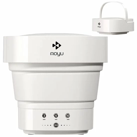 Doordat het een opvouwbare wasmachine is, berg je deze na gebruik gemakkelijk op en zo bespaar je veel ruimte. Hoewel deze mini wasmachine veel pluspunten heeft, is de beste eigenschap ongetwijfeld zijn geweldige opvouwbare en compacte ontwerp (24.7×24.7×23.7 centimeter), perfect om in elke tas of koffer te passen en hem mee te nemen op reis. Daardoor is deze was- en droogcombinatie machine perfect voor kampeertrips of voor in je caravan of boot.