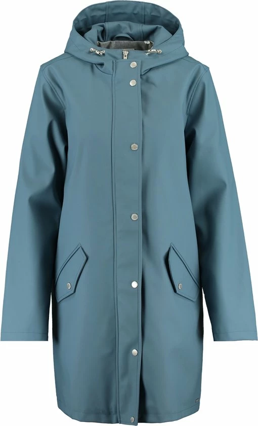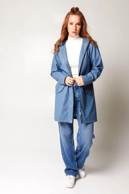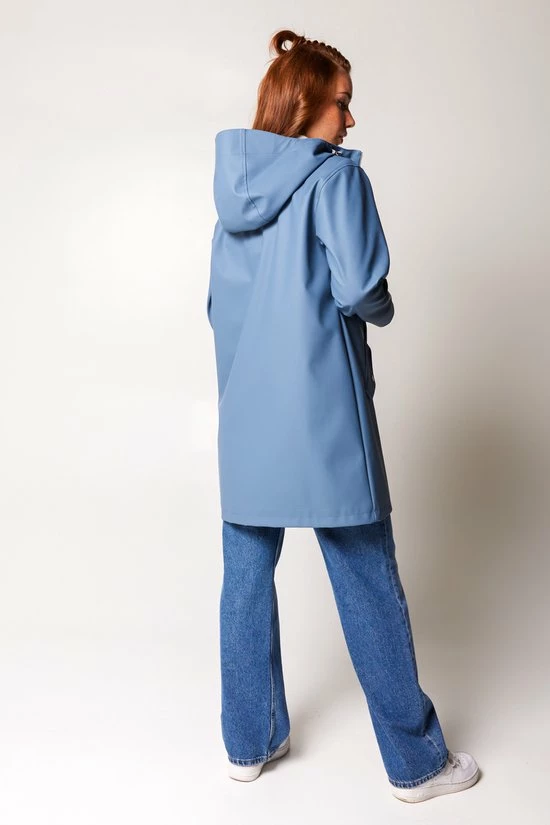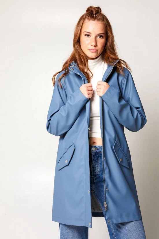 America Today dames regenjas. De Janice is een lange regenjas met capuchon ideaal voor op de fiets. De capuchon kan doormiddel van een trekkoord aangetrokken worden voor extra bescherming. Daarnaast is de regenjas voorzien van een rits- en drukknoopsluiting en twee steekzakken met drukknoopsluiting. Dit klassieke regenjas model kan elk regen moment uit de kast worden getrokken. Ons model is 168 cm en draagt maat S.