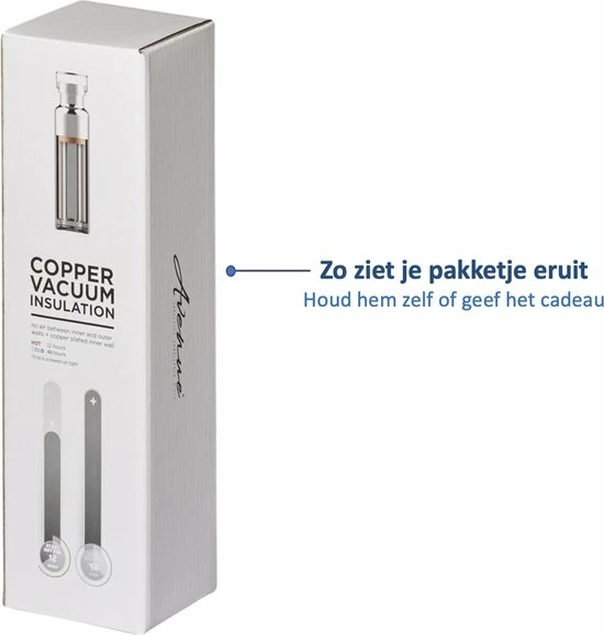 De Avenue vacuüm geïsoleerde drinkfles – sportfles heeft een dubbele wandconstructie. Dit betekent dat tussen de binnenste en buitenste wand van de thermoskan geen geleidend materiaal zit. Bovendien is de binnenste wand van koper. Dit zorgt ervoor dat jouw favoriete drankje nog langer warm of koud bewaard blijft. Warmte kan niet naar buiten of binnen dringen waardoor jij altijd je favoriete drankje op de juiste temperatuur houdt.