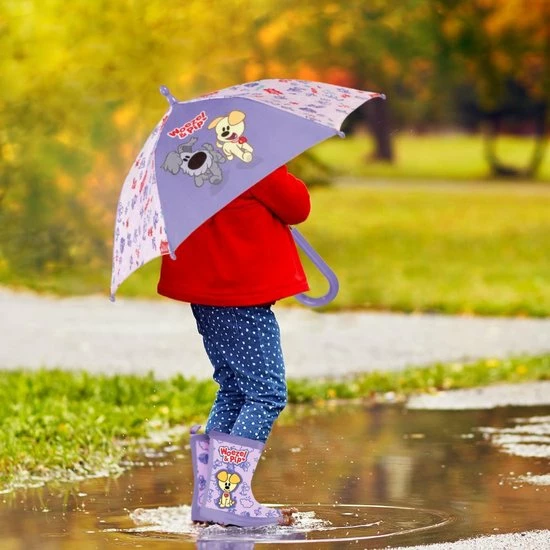 Je kindje blijft lekker droog en stapt vrolijk door de regen met deze mooie paraplu. Hij is geschikt voor kindjes vanaf 3 jaar en heeft een doorsnee van 66 cm. Samen met Woezel & Pip kan je kindje elke regenbui trotseren!