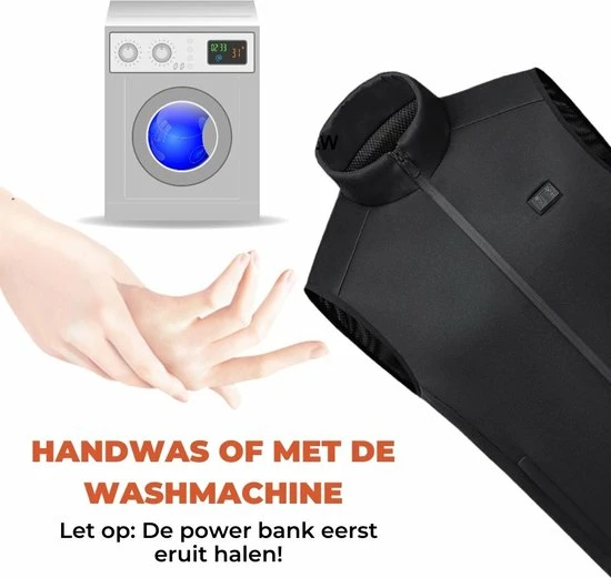 De bodywarmer wordt van stroom voorzien door de draagbare 10.000 mAh powerbank en is eenvoudig op te laden via een USB-oplaadkabel. Dankzij het hoge accuvermogen kan de bodywarmer tot 7 uur worden gebruikt op het laagste warmteniveau (wit licht), 5 uur op middelhoog warmteniveau (blauw licht) en 3 uur op het hoogste niveau (rood licht).