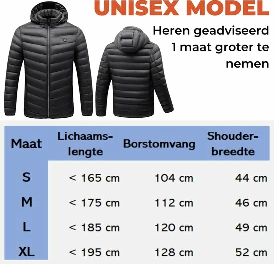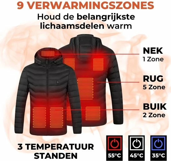 Het vest wordt op unieke wijze van stroom voorzien door een draagbare oplader met 2A of 2,4A USB-uitgang om je warmte te geven zonder constant je eigen lichaamswarmte te gebruiken en ook om je lichaamswarmte in circulatie te houden.