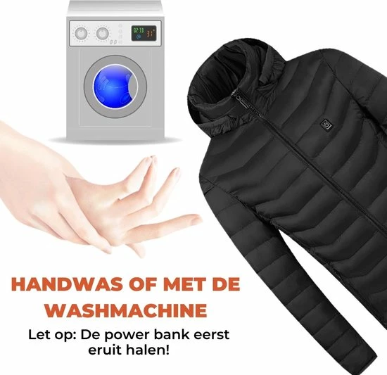 Om de kwaliteit te behouden en de levensduur van het verwarmde vest te verlengen, dient u het vest met de hand te wassen of het vest in een waszak van mesh te doen voor machinewas. Droog het verwarmde vest voor het volgende gebruik af op een koele, goed geventileerde plaats. NIET bleken, strijken of chemisch reinigen.