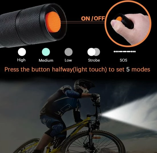 【Waterdicht en schokbestendig】 Lotus-vormige aanvalstop kan de lens beschermen en glas breken in geval van nood. Het slipvrije, slijtvast en IP65 waterdichte ontwerp geeft u een betere ervaring. Deze compacte lichtgewicht zaklamp kan een val van 3 meter overleven of tijdelijk onder water worden ondergedompeld. Het is perfect voor gebruik in de regen, sneeuw of noodsituaties.