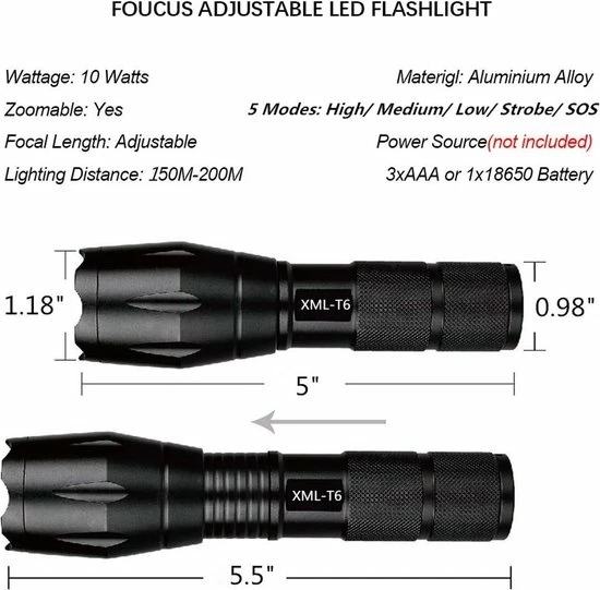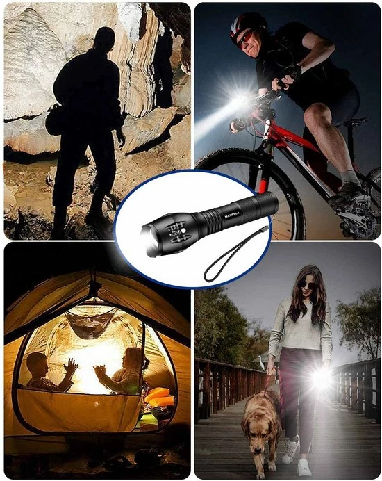 【Super Bright & Long-Lasting】 Hoog Lumen zaklamp LED-lamp zorgt voor super helder licht. 10 keer helderder dan oude gloeilampen. Handig gevoed door 3 standaard AAA-batterijen (6 duracell batterijen inbegrepen) of een enkele oplaadbare 18650-batterij (batterijen niet inbegrepen). Super heldere krachtige LED-zaklamp met een hoge kwaliteit van 100.000 uur levensduur.