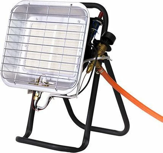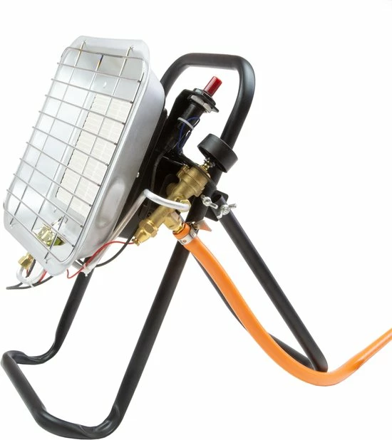 Deze infrarood straler is compleet en vrijstaand te plaatsen of op te hangen. Werkzaam op flessengas (30 mbar). Ideaal te gebruiken voor het verwarmen van de werkplek, tijdens een verbouwing of voor bijvoorbeeld het drogen van stukwerk. Hij is voorzien van een thermo elektrische beveiliging die er voor zorgt dat de gas toevoer direct stopt wanneer de waakvlam uitwaait. Hij wordt tezamen met het vrijstaande statief, 1,5 meter gasslang en drukregelaar van 30 mbar geleverd. Ten opzichte van andere infrarood stralers heeft deze straler een OSD beveiliging waardoor binnen gebruik is toegestaan en tevens een waakvlam stand mogelijk is voor aan en uit schakelen. OSD betekend Oxigen Depletion System, wat inhoud dat als het zuurstof niveau daalt met 1,7 % dan schakelt het apparaat uit.