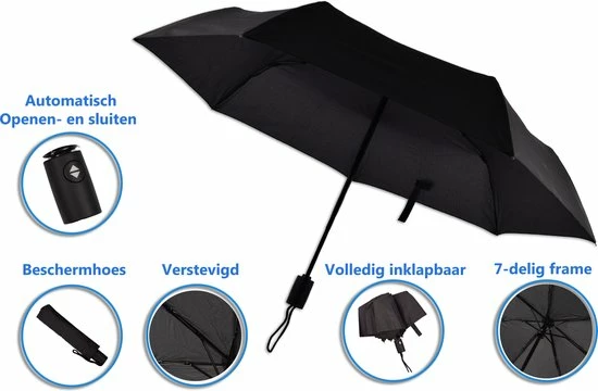 Inhoud verpakking: 1x automatisch stormparaplu met beschermhoes