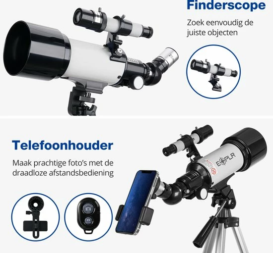 De EXPLR Skysense Telescoop voldoet aan alle behoeften van beginners die aan het begin staan van hun astronomische reis! Of het nu gaat om het ‘s nachts observeren van de sterren, de maan en de verschillende planeten, of het bekijken van de natuur gedurende de dag, met deze telescoop wordt het allemaal werkelijkheid.