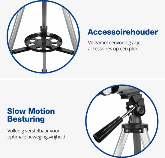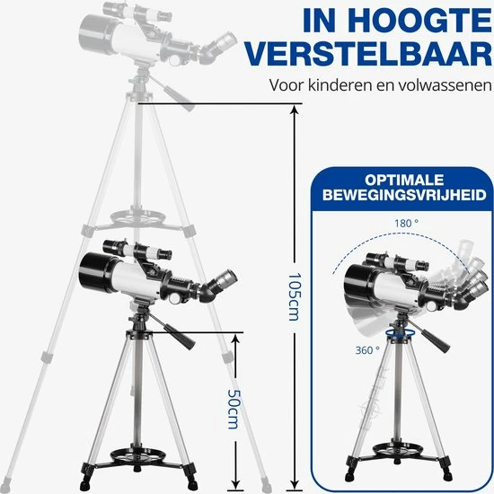 ➤ Verstelbaar statief – Met een verstelbaar statief, van 50 tot 105 cm, is de telescoop geschikt voor jong en oud en kan deze zich aanpassen aan verschillende kijkposities.