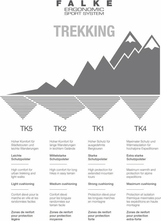 - De versterkte, ademende en hoogwaardige thermosokken van aangenaam zachte wol zonder motief zorgen voor een aangenaam, verkoelend gevoel tijdens het wandelen. Wandelsok van FALKE voor lange wandelingen in gemakkelijk terrein.