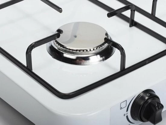 Het gaskomfoor is voorzien van een haakse slangpilaar en is geschikt voor een aansluiting op hervulbare gasflessen door middel van een drukregelaar en een gasslang.