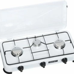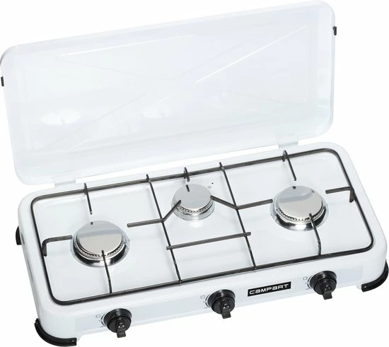 Het Campart Travel gaskooktoestel heeft een handig branderdeksel dat je ook als windscherm kan gebruiken. Door het deksel te sluiten berg je de gaskomfoor eenvoudig en compact op in je caravan of tent. De drie gefixeerde RVS branders laten niet los tijdens het vervoeren en hebben een gezamenlijk vermogen van 4000 Watt. De twee grootste branders hebben een vermogen van 1500 Watt per stuk en de kleine brander heeft een vermogen van 1000 Watt.