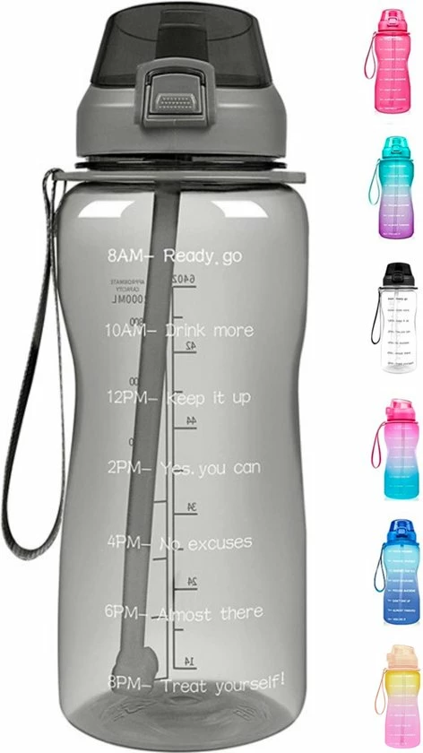 Wil jij ook gehydrateerd en gezond bezig blijven maar vind je het moeilijk om dit op peil te houden? Dan ben ik ideale fles voor jou! Met de motivatie waterfles blijf je gemotiveerd om te drinken en kan je precies bijhouden op welk tijdstip, je welk niveau bereikt moet hebben. De fles bevat een capaciteit van 2 liter, waardoor jij genoeg vocht binnenkrijgt gedurende dag. Deze fles maakt het voor jou een stuk makkelijker om jouw dagelijkse hoeveelheid vocht binnen te krijgen. Hierdoor zal je eveneens meer energie hebben gedurende de dag. Door de unieke look van de fles zijn wij ook uiterst geschikt om mee te nemen naar de fitness, werk of andere gelegenheden.