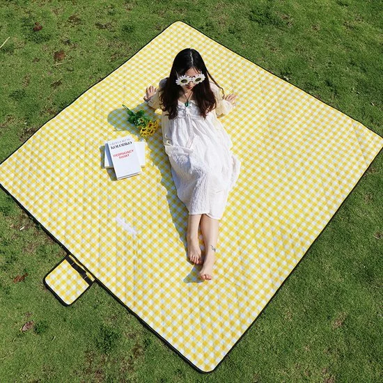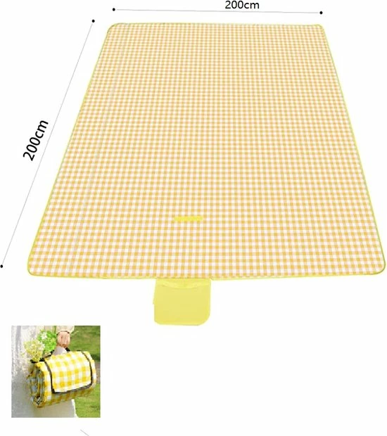 Fuegobird- Picknickdeken-200 X 200 Cm-Stranddeken- Opvouwbare Campingdeken- Waterdicht- Zanddichte Picknickmat- Draagbare Tuin-strandmat- Machinewasbaar- Voor Kamperen- Tuin- Park- Strand-geschikt Voor Kinderen’s Kruipdeken (geel)