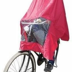 Een regenponcho speciaal ontwikkeld voor de fiets. Deze fiets poncho is eenvoudig aan te trekken en aan de voorzijde voorzien van een transparante overlap. Deze zorgt ervoor dat de poncho over het stuur heen gehangen kan worden zonder dat daarbij de koplamp verduisterd. Aan de binnenzijde zijn twee elastieken lussen om de handen door te steken om opwaaien te voorkomen. De rode regenponcho fiets is vervaardigd uit waterdicht PVC en heeft drukknopen rondom de hals. Deze regenponcho is in één maat leverbaar, “One-size-fits-all”.
