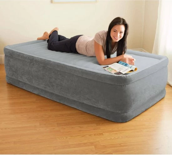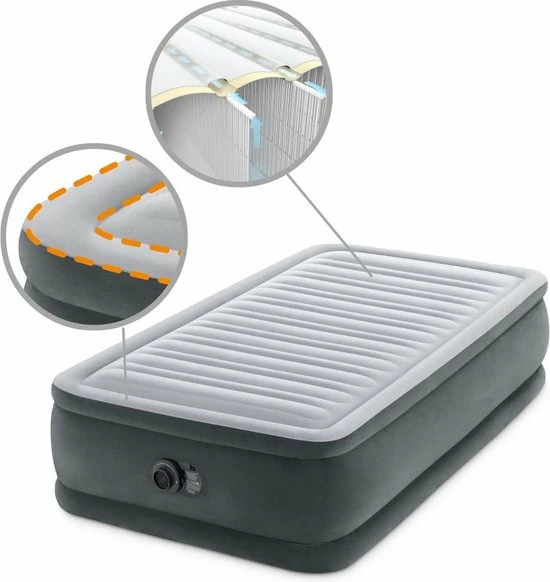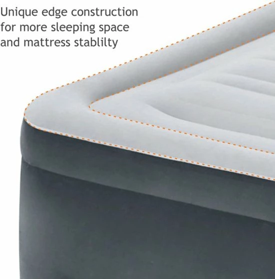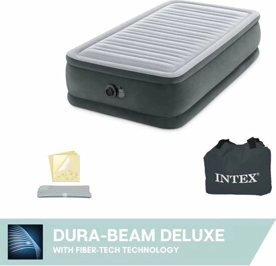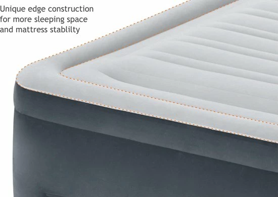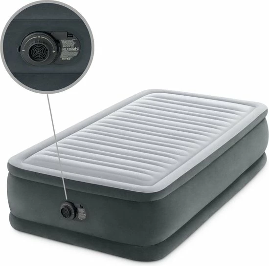 Let op: Het ligoppervlak kan tot 10 cm afwijken van de productlengte, houd hier rekening mee tijdens het bestellen. Bij het eerste gebruik moet het materiaal eventueel nog uitrekken, ‘s ochtends wat nieuwe lucht toevoegen is dan wellicht nodig. Een van de meest comfortabele producten van Intex is dit luchtbed; het Intex Comfort-Plush Luchtbed. Dit luchtbed is ideaal tijdens kampeervakanties, feestjes en logeerpartijen doordat het een ingebouwde pomp heeft en een draagtas inbegrepen is.
