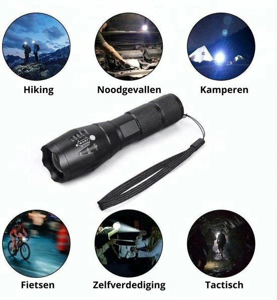 Met deze militaire zaklamp ben jij niet de enige die aan het shinen is. Met de zaklamp kan je zeker tot 200 meter in het donker zien. De zaklamp is van hoge kwaliteit en niet kapot te krijgen! Wanneer jij ’s avonds in de regen de hond uit laat ben jij goed zichtbaar.