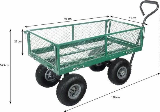 - Afmeting bolderkar kar: Lengte: 1,02m Breedte: 50,0cm Hoogte: 56,0cm