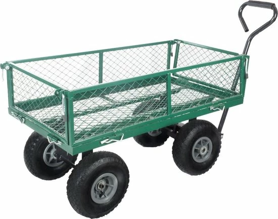Deze bolderkar is geschikt om voor diverse doeleindes te gebruiken, zoals bijvoorbeeld voor een dagje uit of voor het lopen van een kranten- of folderwijk. Deze bolderkar is volledig van metaal waardoor deze een hoge draagcapaciteit heeft. De bolderkar heeft banden met lucht, hierdoor kun je zelf bepalen hoe hard of hoe zacht je de banden wil hebben. Wij adviseren je om deze bolderkar te combineren met bijvoorbeeld (tuin)kussens wanneer deze gebruikt wordt om kinderen te vervoeren.