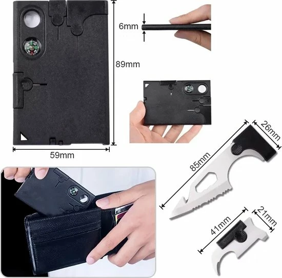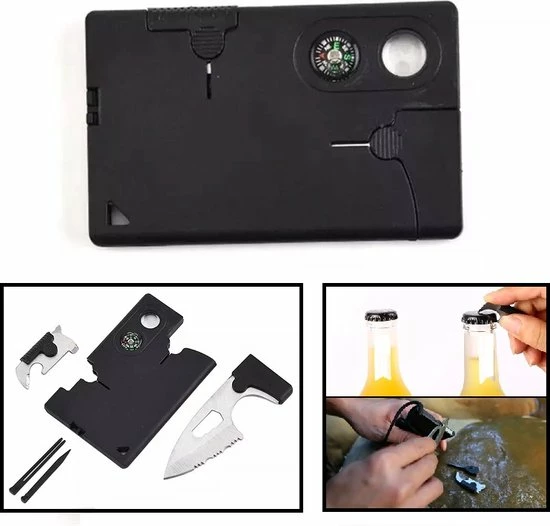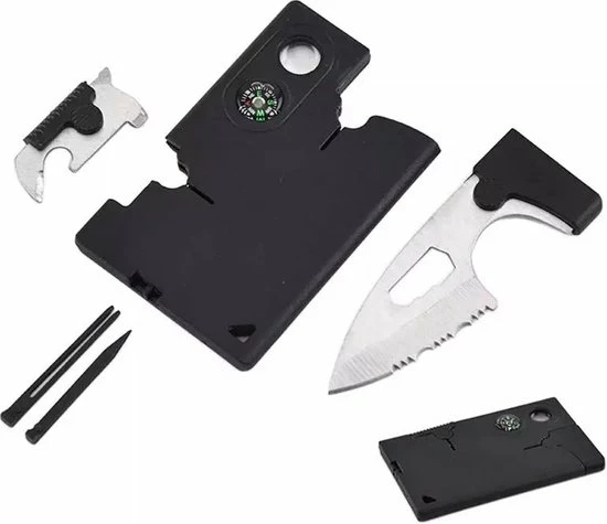 Iedere survivaller wil natuurlijk altijd zo veel mogelijk bij zich hebben met zo weinig mogelijk gewicht. Zoek dan niet langer door want wij hebben nu een Multi tool met 10 verschillende functies in de vorm van een credit card. Hij is slechts 5 millimeter dik en is daarom ideaal voor alle hikers, kampeerders en survivallers.