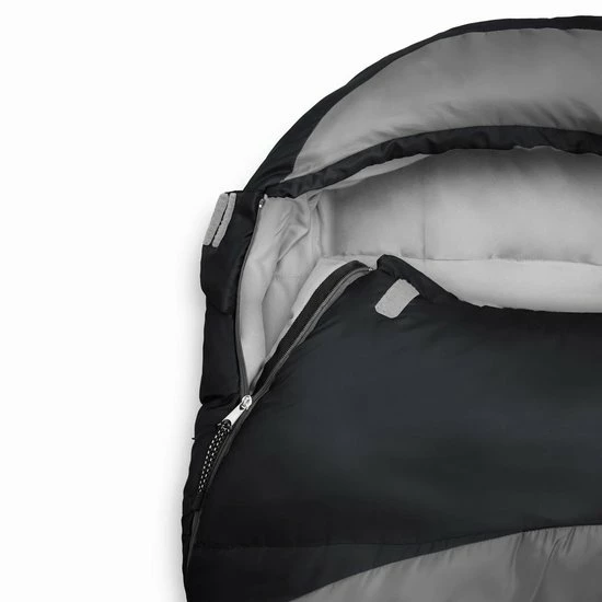 De twee wegritssluiting vergemakkelijkt het in en uitstappen, heeft anti-klem bescherming, zodat de ritssluiting niet vastloopt en reguleert tegelijkertijd toevoer van koudere lucht, mocht het te warm worden in de mummieslaapzak.