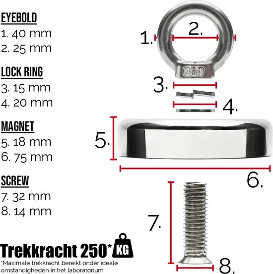 Natuurlijk willen wij net zo graag als jij dat je zonder problemen en veilig je nieuwe hobby kunt uitvoeren. Daarom is het belangrijk om de meegeleverde handleiding goed door te lezen. Hierin staat bijvoorbeeld dat je het oog van de magneet moet vastlijmen. Dit kan met het bijgeleverde schroefborgmiddel. Zo voorkom je dat je jouw magneet in het water verliest.