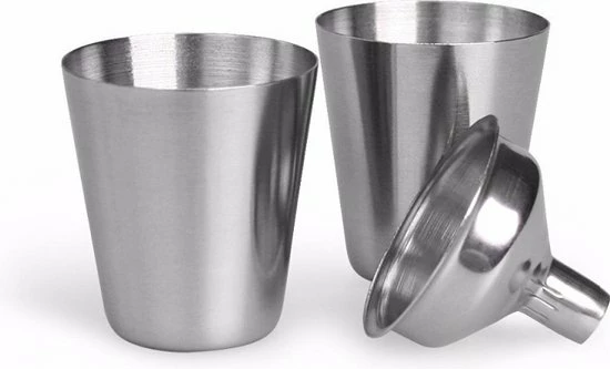 – Inhoud | 1 Flacon – 1 Trechter – 2 Bekertjes