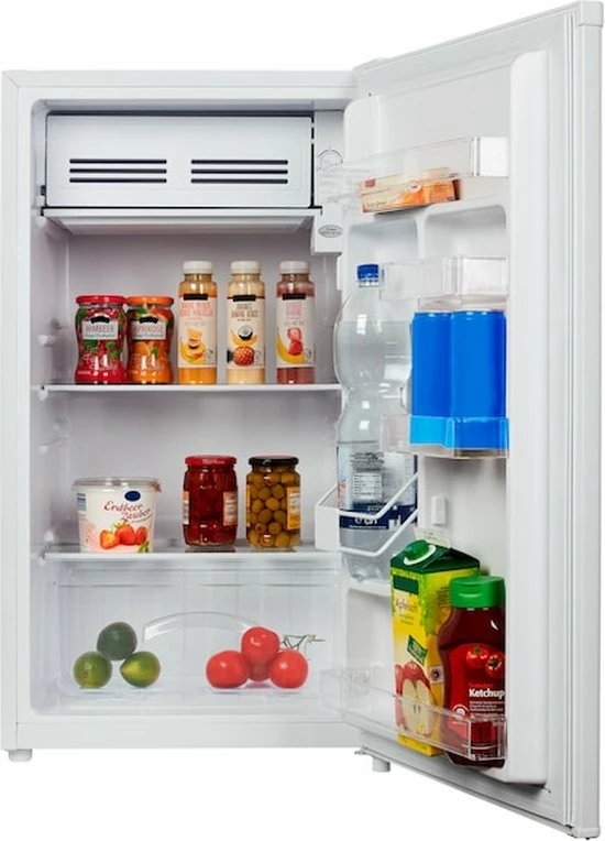 Met zijn breedte van 48 cm past de MEDION koelkast met ijsblokjesvak ook in uw keuken. Vooral studenten, stagiairs, alleenstaanden of andere huishoudens met één of twee personen hebben baat bij deze compacte koelbox, want met zijn inhoud van 83 liter past er nog van alles in. Je hoeft dus geen slecht geweten te hebben als je wat meer hebt meegenomen bij het winkelen. De kleine heeft ook een vriesvak. Zo kunt u genieten van een koel drankje in de hete zomer of van een ijsje met warme bessen in de koude winter.