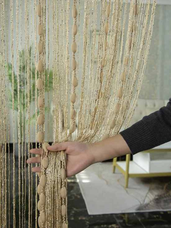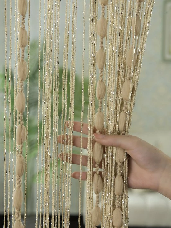 Merkloos Stijvolle Vliegengrodijn – Sier Gordijn – Deurgordijn – Beige – Modern – Ibiza Stijl – 100 *200 Cm