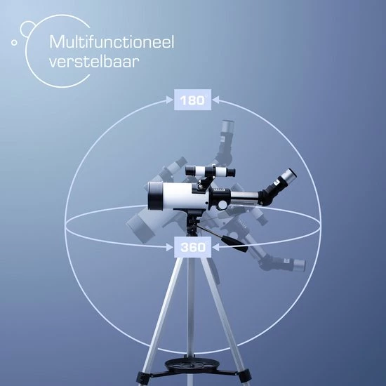 Nu tijdelijk met gratis verstelbaar. Het lichtgewicht statief kan de telescoop in hoogte worden versteld van 45cm tot 140 cm. Door het unieke design kan deze zich op 360℃ aanpassen aan verschillende kijkposities, zo blijft het object altijd zichtbaar.
