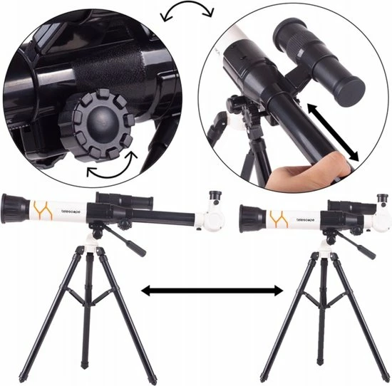 De astronomische telescoop is het perfecte speelgoed voor toekomstige astronomen! De telescoop heeft in zijn set 3 verwisselbare lenzen van verschillende sterkte – vergroting 20x, 30x en zelfs 40x! De telescoop is bovendien uitgerust met een 360 graden draaibaar statief. Het is ook in hoogte verstelbaar!