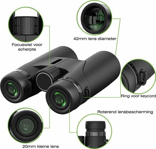 Haarscherp beeld: De lenzen in de verrekijker hebben Bak-4 prisma glazen. Dit geeft je op iedere afstand een scherper beeld dan andere verrekijkers.