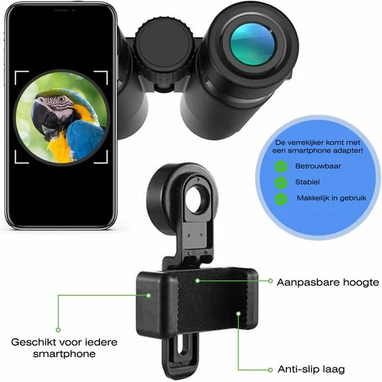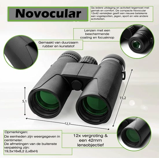 Ben je op zoek naar een verrekijker voor vogelaars, vogelsspotten of wil je de monoculair of monokijker vervangen? Is het lastig om een betrouwbare, robuuste verrekijker te vinden? De Novocular 12×42 verrekijker voor volwassene maakt een wereld voor je open. De Novocular verrekijker kan een telefoon/statief bevestigen waarmee er haarscherpe foto’s gemaakt kunnen worden door de lens zonder last van blur in de foto’s met optimale vergroting