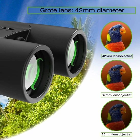 Functioneert bij zwak licht: Wanneer je de verrekijker wilt gebruiken in avondlicht kan je ongeremd hemellichamen bestuderen of vogelspotten. Je bent niet alleen gelimiteerd aan het daglicht om je prooi te spotten.