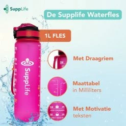 Nimma Motivatie Waterfles – 1 Liter Drinkfles – Met Tijdmarkeringen En Fruitfilter – Roze Paars