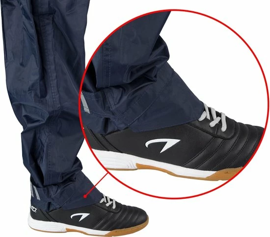De regenbroek is uitgerust met verstelbare broekspijpen door middel van klittenband zodat het eventueel met schoenen aangetrokken kan worden. In de taille van de broek is elastiek aangebracht voor extra draagcomfort en een mooie aansluiting op het lichaam. Dankzij de reflecterende accenten kun je in dit regenpak bovendien veilig op pad, ook in het donker.