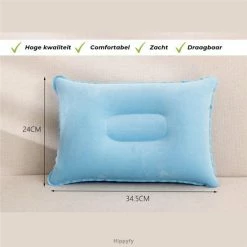 Het opvouwbare formaat is 35 x 24 x 5 cm waardoor je de opblaasbare kussen, makkelijk en overal mee naar toe kunt nemen. Deze opblaasbare kussen is ontworpen met een dubbelzijdige, centrale diepte. Deze diepte is speciaal gevormd voor het achterhoofd. Dankzij het design van de opblaasbare kussen ervaar je meer comfort voor je nek. Tevens ervaar je meer veer in de kussen en past de kussen zich aan bij iedere ligpositie.
