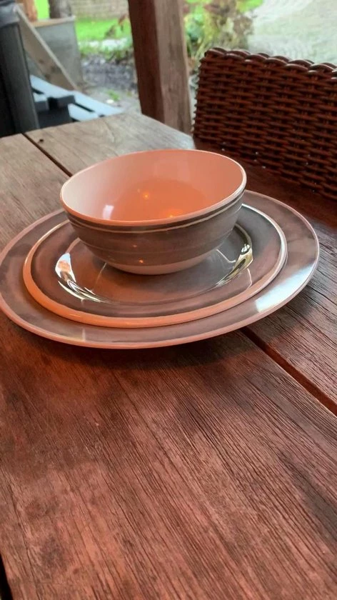 Een 12-delig servies van 100% melamine. Melamine servies is vrijwel onbreekbaar en zeer licht van gewicht. Daarnaast is het servies kraswerend en vaatwasmachinebestendig. Ideaal voor op de camping of bij uw buitenkeuken. Deze stijlvolle set is geschikt voor 4 personen en bestaat uit 4 borden, 4 ontbijtbordjes en 4 kommen.