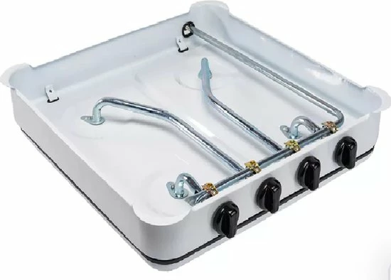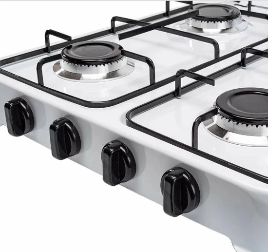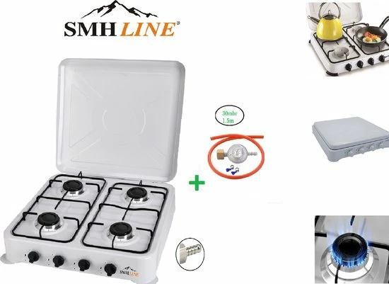 SMH LINE® – Gas kooktoestel set 4 pits – Campingkooktoestel set – Gaskomfoor – Gaskookplaat Wit – INCLUSIEF 30mbar Gasslang installatie set