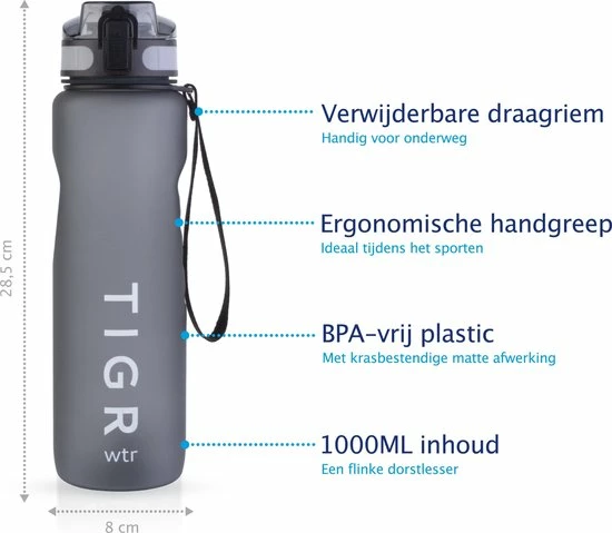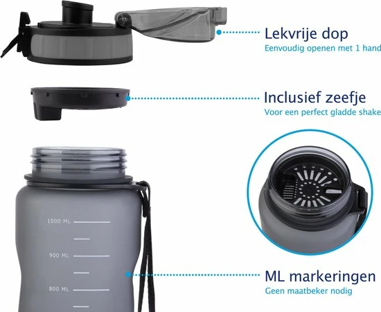 Wil je vooral een drinkfles die je voor verschillende activiteiten kan gebruiken? Dan is deze TIGR drinkfles echt iets voor jou. Vul hem met fruit en geniet dagelijks van heerlijk fruitwater zonder toegevoegde suikers en calorieën. Dankzij het zeefje komt er geen pulp in je mond. Met de handige draagriem en handgreep neem je de fles gemakkelijk overal mee naartoe. Ben je klaar met je workout en wil je genieten van een lekkere eiwitshake? Meng de ingrediënten in de fles met behulp van de maataanduiding en meegeleverde schudbal, en geniet van een heerlijk gemengde shake!