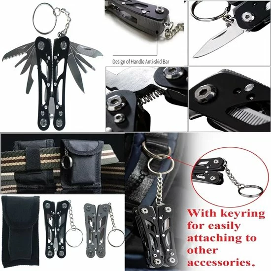 1 Tang waar met 10 functies. Klein genoeg voor in je broekzak of tas, ook voorzien van een sleutelring.